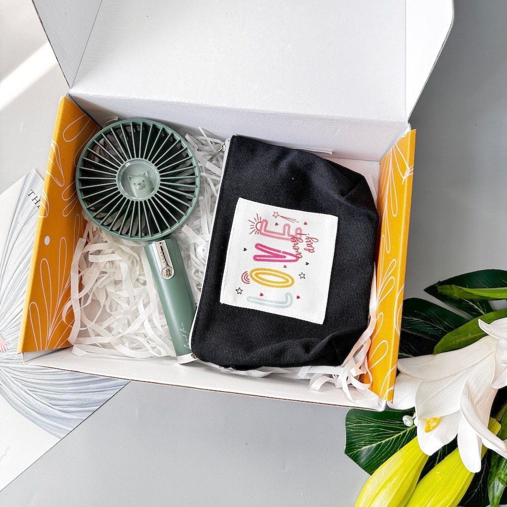 Hộp quà 2 món quạt mini kèm ví cầm tay – quà tặng phụ nữ GS1037 (mix ngẫu nhiên)