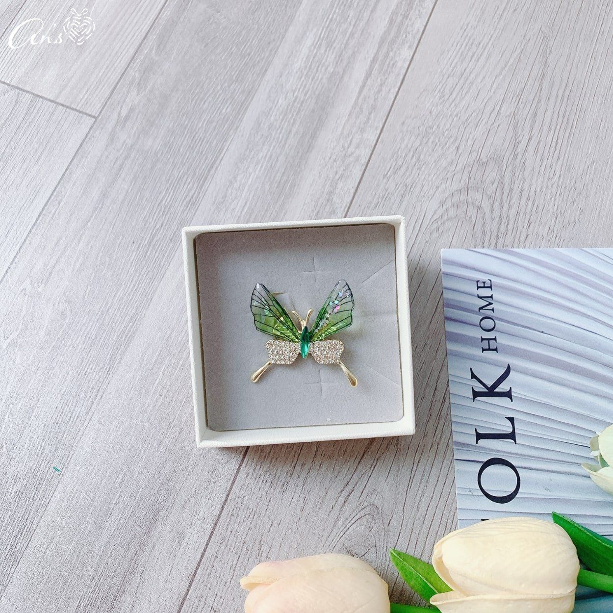 Hộp quà ý nghĩa – Trâm cài áo bướm đính đá sang trọng TCA 1015
