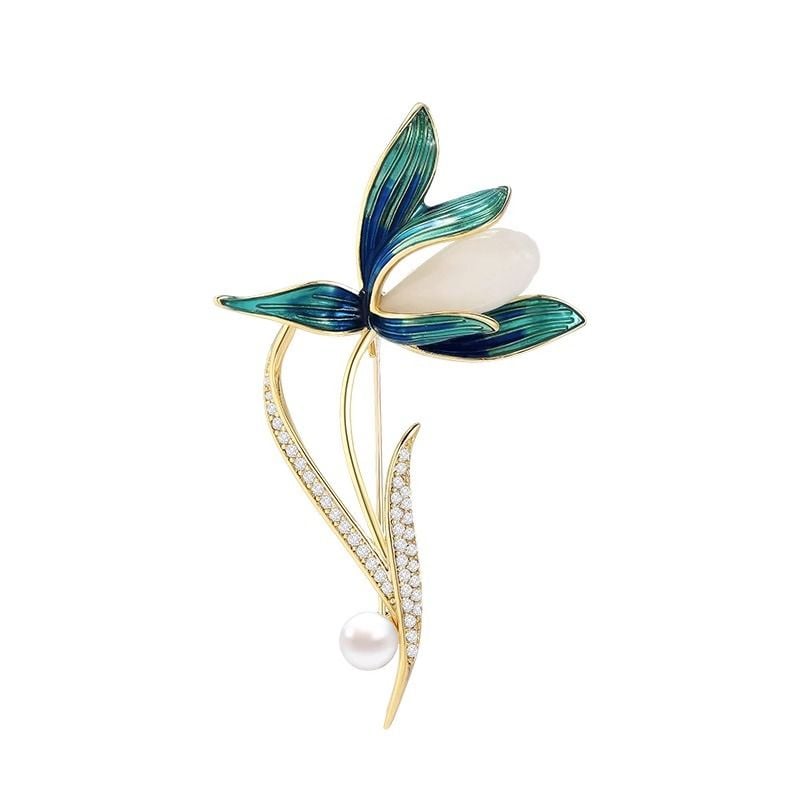 Quà tặng cô giáo – Trâm cài áo hoa mộc lan đính ngọc sang trọng TCA 1007