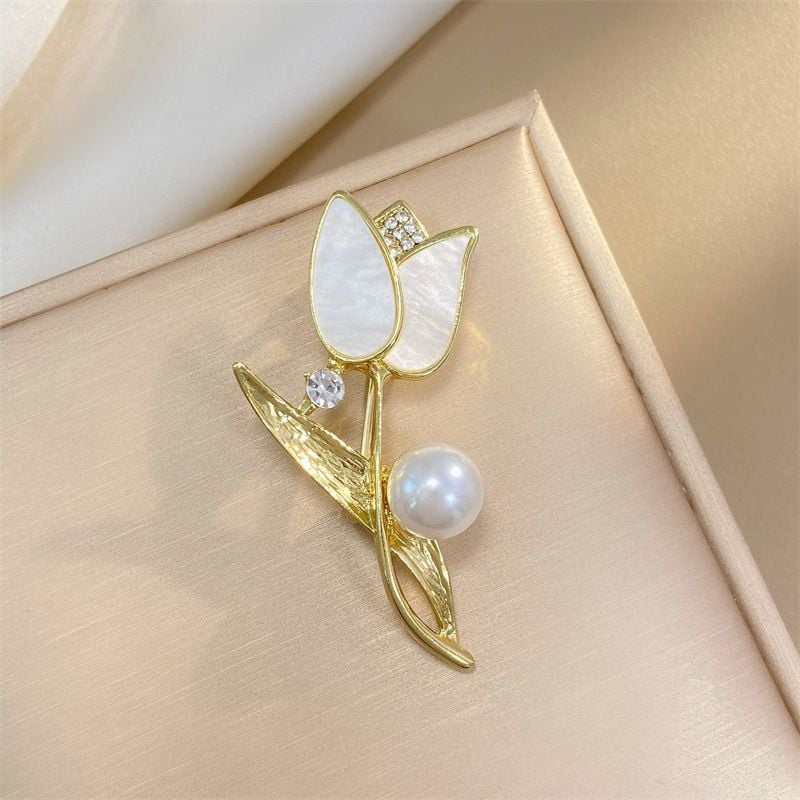 Quà tặng nhân viên nữ – Trâm cài áo hoa tulip đính ngọc nữ tính TCA 1008
